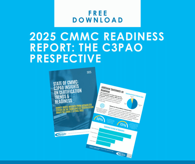 Need help navigating CMMC compliance? Contact Alluvionic to get expert support from a Cyber-AB Registered Practitioner Organization.